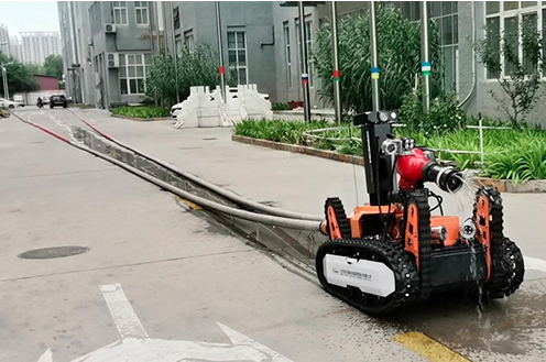 Le robot est conçu avec une télécommande sans fil. L'unité de télécommande et le moniteur sont soit intégrés, soit séparés. Il peut afficher des informations en temps réel telles que l'état de la batterie, les conditions internes, l'état du robot, la température et l'humidité sur site, ainsi que des informations d'alarme concernant les concentrations de gaz toxiques et nocifs, contrôlant les mouvements du robot tels que l'avant, l'arrière et le virage. Il possède des capacités de reconnaissance à distance. Le corps est équipé de trois types de dispositifs de perception environnementale et d'équipements de contrôle de plateforme cloud, comprenant une plateforme cloud d'élévation et de rotation, des caméras haute définition, des caméras thermiques et des capteurs de gaz. Il peut également être lié à des modules d'alarme sonore et lumineuse pour alerter les pompiers ou le public, évitant ainsi efficacement le danger. Après avoir obtenu efficacement les informations sur la source d'incendie grâce à des moyens de reconnaissance à distance, le robot est équipé d'un moteur haute puissance qui peut aider les pompiers à traîner des sacs d'eau d'incendie vers la zone dangereuse de la source d'incendie pour l'extinction, et peut transporter divers types de sacs d'eau d'incendie nationaux et étrangers, et peut contrôler à distance la libération d'eau ou de mousse. Basé sur le module de captation et le module de haut-parleur équipés, il capte les sons de l'environnement sur site. Même si les pompiers ne sont pas proches du lieu de l'incendie, ils peuvent entendre les appels à l'aide des personnes sur le site de sauvetage grâce au module de haut-parleur et avoir une conversation en direct avec les personnes sur les lieux.